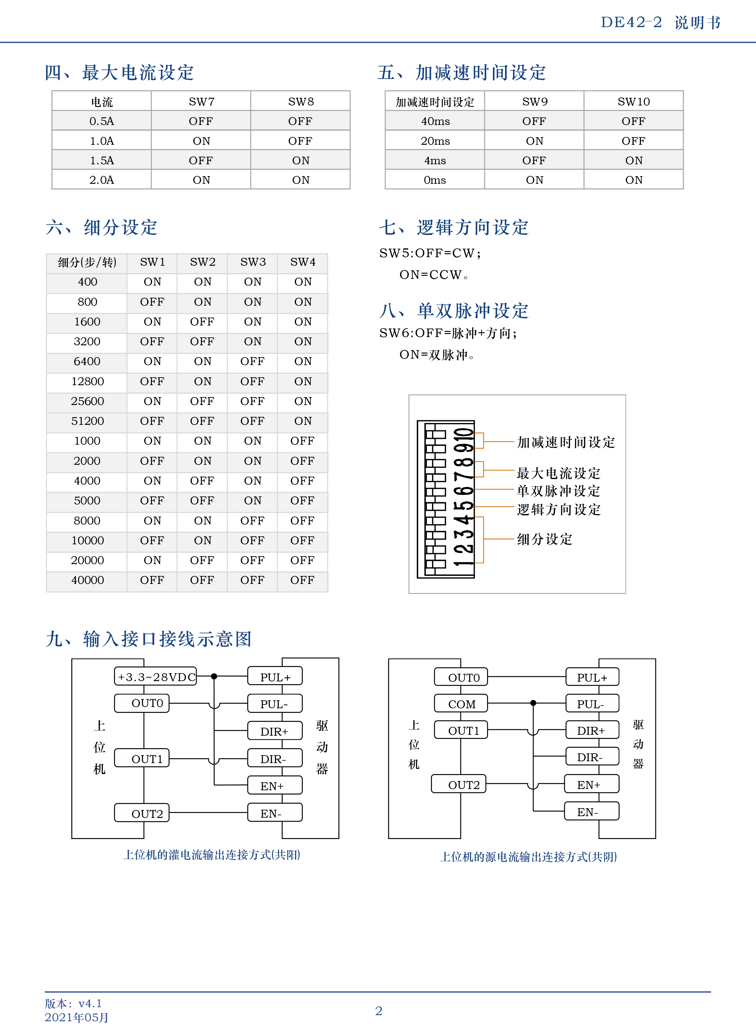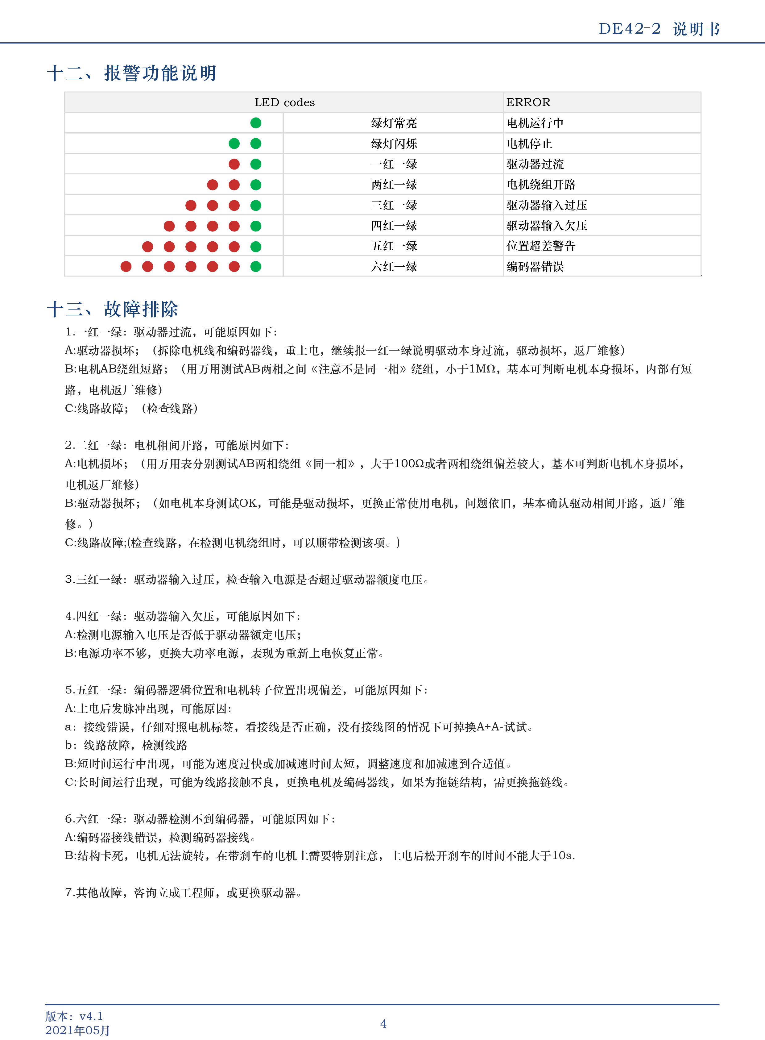 DE42-2 是公司潜心研制的基于新一代基于32位DSP技术的高性能两相数字式步进驱动器,驱动电压DC18V-60V适配电流 2.0A以下,外径42以下各种型号两相混合式1000线闭环电机。驱动器采样类似伺服的控制原理,独特的电路设计,优越的软件算法处理,使电机即使在低细分下也能运行平稳,几乎没有振动和噪音,平滑、精确地电流控制技术大大减少了电机发热,外置16档等角度恒力矩细分,最高可调细分51200脉冲/转,光耦隔离差分信号输入,抗干扰能力强,具有过压、欠压、过流保护等出错保护功能。在3C、LED贴片等中、高速应用领域,其平稳性、振动、噪声性能优势明显,可大大提高设备性能。